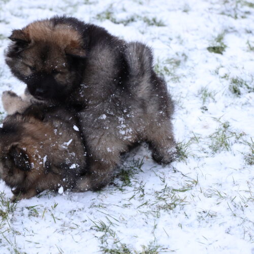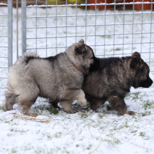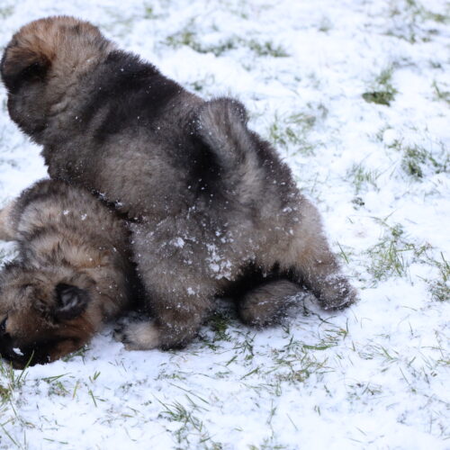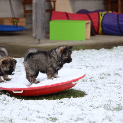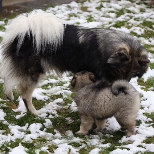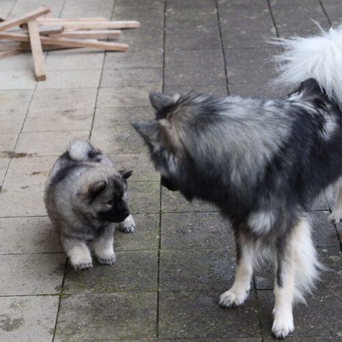 Nach den Weihnachtsagen wurde es bei uns etwas ruhiger. Anfangs Woche kam unsere Hundetrainerin Bea vorbei, welche selber zwei Eurasier hat. Juna hat sich sooo fest gefreut. Wir haben sie einfach zu lange nicht mehr gesehen. Wir hoffen noch fest, dass wir nach unserer „Babypause“ unseren Familienhundegruppe wieder besuchen können. Mal schauen, ob Corona dies zulässt… Am Dienstag stand die Welpenkontrolle auf dem Plan. Denise von der Zuchtkommission des Schweizer Eurasier Club nahm unsere Zuchtstätte unter die Lupe und kontrollierte, ob die Welpen und Juna gesund und munter sind. Sie war mit allem sehr zufrieden, was uns sehr erfreute. Denise war sehr erstaunt, wie viel Fell unsere K’s haben. Das haben sie von ihrem Papa Khan geerbt 🙂