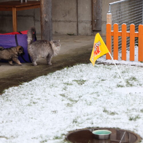 Auch der Jahreswechsel stand vor der Tür. Juna mag Feuerwerke nicht besonders, sie hat aber nicht sehr viel Stress. Den Welpen machte die Knallerei überhaupt nichts aus und sie verpennten den Jahresübergang. Das war die erste (und ich nehme an letzte) Nacht, die Juna nicht bei den Welpen, sondern bei uns verbrachte. Es kamen wie jede Woche alle Welpenbesitzer vorbei, um die Kleinen zu sehen und sich mit uns auszutauschen. Alle waren erstaunt, wie gross sie bereits geworden sind. Auch uns fällt auf, dass sie jede Woche etwas schwerer werden. Sei es bei der Futtergabe (die Menge wächst und wächst) oder beim Heruntertragen in den Welpengarten; sie werden einfach zu schnell gross.